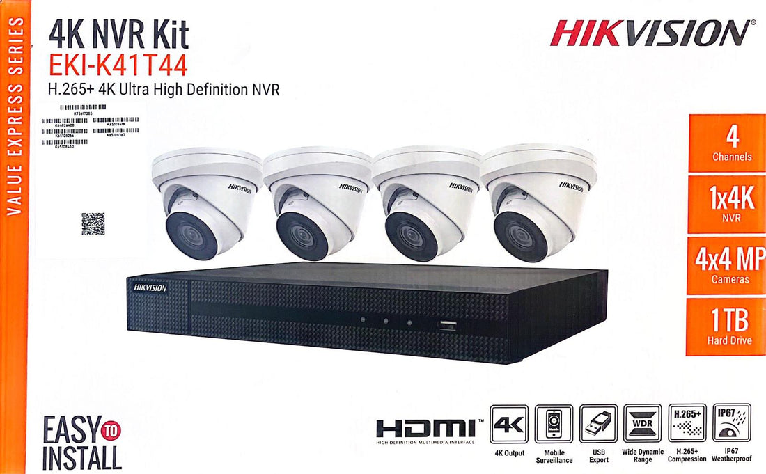 Hikvision IP Security Camera Kit 4 Channel 4K NVR with 4 x 4MP Turret Cameras EKI-K41T44