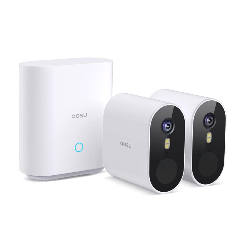Aosu C6P-2H 3MP 2pcs Battery-Powered Dual Band Wi-Fi Cameras with Spotlight ,166¡ã Wide-angle Lens AI, 2-Way Audio Function and 32GB Local Storage Box